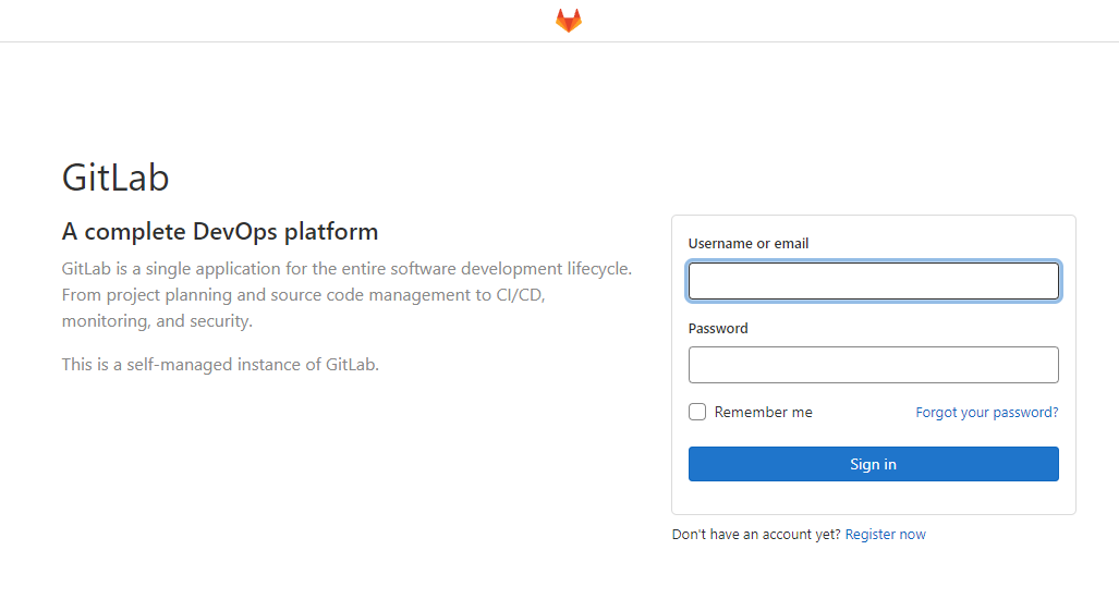 此时会进入到登录页面,默认的账户是root,密码请通过cat /etc/gitlab/initial_root_password